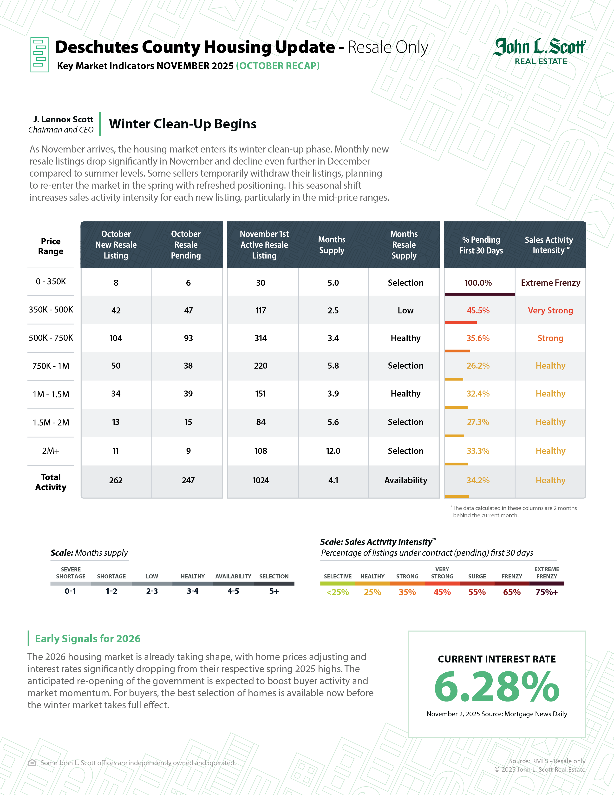 The 2026 housing market is already taking shape, with home prices adjusting and interest rates significantly dropping from their respective spring 2025 highs. The anticipated re-opening of the government is expected to boost buyer activity and market momentum. For buyers, the best selection of homes is available now before the winter market takes full effect.